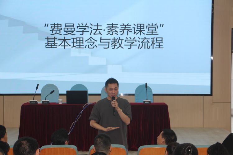 費曼學(xué)法,要“突出學(xué)生的主體地位”,“以學(xué)定教”,陳老師沒有干巴巴地輸出理論,而是以兩節(jié)公開課為例,具體明確地向大家展示了教學(xué)流程。我校老師們化身學(xué)生,隨著陳老師進入物理的世界,分組學(xué)習(xí),自主預(yù)習(xí),組內(nèi)討論,并派代表上臺展示成果,接受其他小組的質(zhì)疑。陳老師精彩的點評幽默風(fēng)趣,極富個人魅力,在他的帶領(lǐng)下,老師們積極發(fā)言,完全融入到自己扮演的角色中,氛圍輕松,笑語不斷。