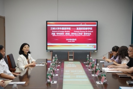 三峽大學(xué)外國語學(xué)院院長(zhǎng)席敬:大學(xué)與優(yōu)質(zhì)高中共同搭建高質(zhì)量的產(chǎn)教融合一體化平臺(tái),聚焦國際傳播、語言服務(wù)、跨文化交際、外語教育技術(shù)等研究與實(shí)踐,不僅能促進(jìn)雙方學(xué)校在學(xué)術(shù)資源與實(shí)踐平臺(tái)方面的優(yōu)勢(shì)互補(bǔ),為研究生提供優(yōu)質(zhì)的實(shí)踐機(jī)會(huì)以及課題研究和就業(yè)發(fā)展平臺(tái),而且能顯著提升高中英語學(xué)科師資的實(shí)踐能力、創(chuàng)新精神和職業(yè)競(jìng)爭(zhēng)力。外國語學(xué)院堅(jiān)信,共建研究生工作