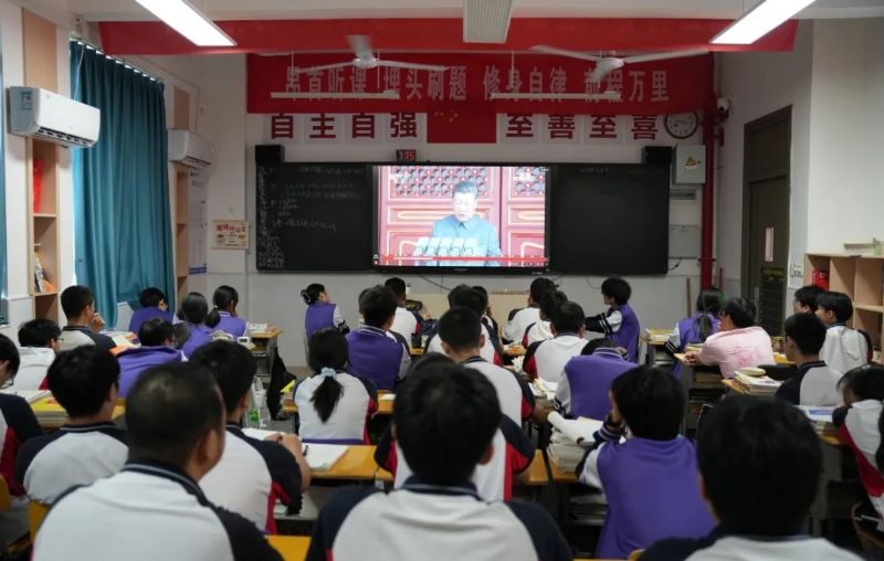 2025年9月3日,宜昌歐陽修學(xué)校組織師生共同觀看抗戰(zhàn)勝利80周年閱兵盛典。習(xí)近平總書記發(fā)表慷慨激昂、振奮人心的重要講話,隆重紀(jì)念中國人民抗日戰(zhàn)爭暨世界反法西斯戰(zhàn)爭勝利80周年。銘記歷史、緬懷先烈、珍愛和平、開創(chuàng)未來。中華民族偉大復(fù)興勢不可擋!人類和平與發(fā)展的崇高事業(yè)必將勝利。當(dāng)共和國鋼鐵雄師的號聲響徹天際,當(dāng)現(xiàn)代化裝備方陣以排山倒海之勢駛過天安門廣場,當(dāng)戰(zhàn)機梯隊呼嘯著劃破長空,整個校園沸騰著自豪與感動。師生們凝神屏息,眼中閃爍著激動的淚光,在這場氣勢恢宏的國家盛典中真切感受到了強國強軍的時代強音。
