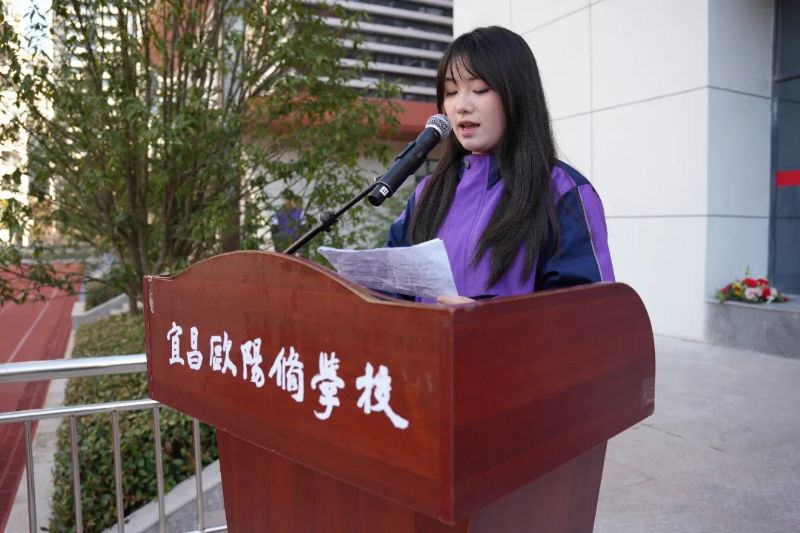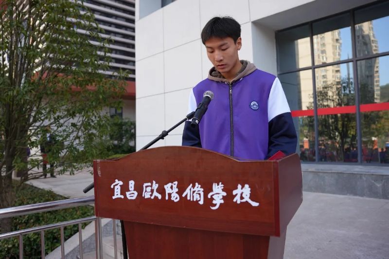 運動員代表303班曾昱文神情堅毅地發(fā)表感言并宣誓,承諾將嚴格遵守比賽規(guī)則,尊重對手、尊重裁判、尊重觀眾,以飽滿的熱情、昂揚的斗志全力以赴,賽出風(fēng)格、賽出水平,展現(xiàn)歐陽修學(xué)子的良好風(fēng)貌。