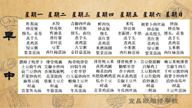 宜昌歐陽修學(xué)校每周食譜(12月8日-12月14日)